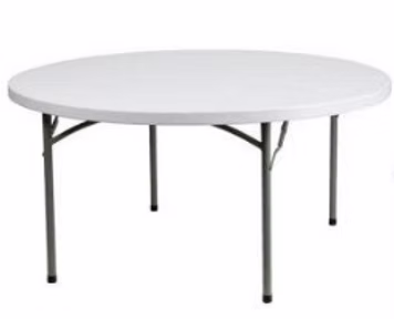 Commercial-grade polyethylene folding tables are the standard for plastic folding tables. The 48” round tabletop is constructed from high-density polyethylene which make them a great, durable choice for both indoor and outdoor use. The smooth, round edges add to the comfort of the table making plastic folding tables a great choice for easy set up!