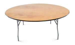Round Wood Folding Table (72″, seats 8 – 10)