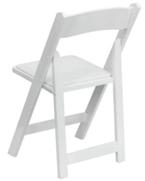 White Wood Folding Chair with Vinyl Padded Seat